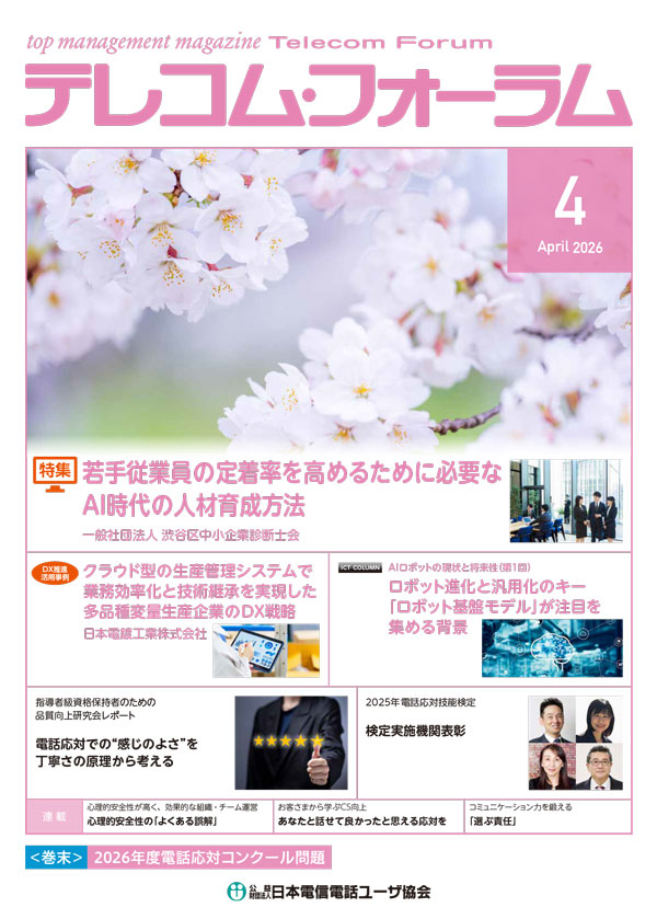 ICT分野の最新動向や企業のCS向上事例まで、多彩な情報をまとめたテレコム・フォーラム誌をPDFでダウンロードいただけます。