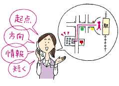 第29回 人を動かすことば力 アナウンサーのノウハウから学べFAX、電子メール、ナビゲーションシステムなどICTの進歩で、昨今はあえて口頭で「道案内」をする必要がなくなってきました。その結果、電話などで道順を聞かれた場合、要領良く説明ができない人が増えたのではないでしょうか。道案内は、話し言葉による説明力の基本であり、電話応対にも大いに役立つ要素が詰まっています。今回は、基本に返って「道案内」について考えます。