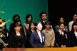 来賓の方々のご挨拶、審査委員の紹介に続き、 佐藤 朋美さん(宮城代表)が、元気よく選手宣誓。「これから競技スタート」という緊張感で、会場が引き締まりました。