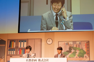 各選手は、3分という持ち時間の間、「杜都企画の社員、 広瀬 純さん」になりきり、ときには身振り手振りや笑顔も交えながら、お客様の応対に全力を尽くしました。