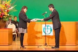 競技終了後、成績発表。見事優勝(総務大臣賞)に輝いたのは、株式会社NTTマーケティングアクト四国支店の、 楠 清美さん(愛媛代表)。 「やりとげた」という笑顔が印象的でした。