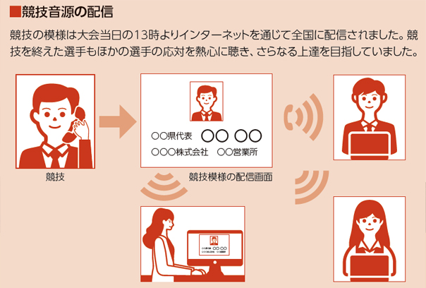 この応対模様は選手の写真やプロフィールとともにインターネットを通じて全国に配信されました。審査委員は職場などからリモートで参加し、録音された競技音源を聞き審査が行われました。
