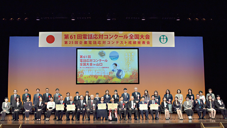 公益財団法人 日本電信電話ユーザ協会が主催する「第61回 電話応対コンクール全国大会」が、山口市の「KDDI維新ホール」で開催されました。今回は3年ぶりに集合形式の開催となり、新型コロナウイルス感染防止対策に万全を期して競技が行われました。会場では全国各都道府県で6,620名が参加した予選を勝ち抜いた57名が、普段から職場で磨き上げてきた技量を最大限に活かし、熱い戦いを繰り広げました。