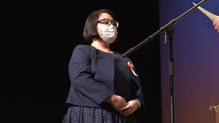 競技に先立ち、選手を代表して地元山口県代表の伊藤 泰子さんが、中野 武夫 日本電信電話ユーザ協会会長を前に、競 技への意気込みを宣言しました。