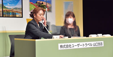 選手は、ユーザートラベル山口支店の社員になりきって、心を込めた応対を行いました。