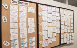 お客様からの「満足の声」や「感謝の一言」が並ぶボード。こうしたメッセージがレップのモチベーションアップ、スキルアップにつながる。