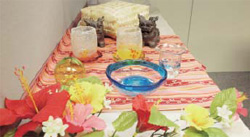 オフィスの片隅に“リトルオキナワ”を発見!12月の電話応対コンクールに向けた雰囲気づくりでした。