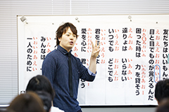 そのためには、母音をしっかり発音することが重要です。まずは全員で「あいうえお」の母音を丁寧に発音する練習をしました。和やかな雰囲気の中で授業は進みます。
