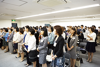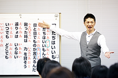 一方で浅利氏は、学校における日本語教育に疑問を感じていたといいます。先生の授業をおとなしく聞き、ノートを取ることは上手でも、自分でしゃべることはまったく不得意のまま育ってしまった日本の子供たち。危機感を抱いた浅利氏は、話すことを学べる機会を提供するために、小学5年生と6年生を対象にした『美しい日本語の話し方教室』を始めました。今回は、電話応対技能検定 指導者級資格保持者のみなさんにも、小学5年生として参加していただき、本教室はスタートしました。