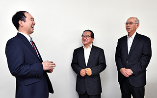 ▲中野氏の尽力を会社も高く評価。写真中央は理事長の波多野 実氏、右は専務理事の佐村 敏氏