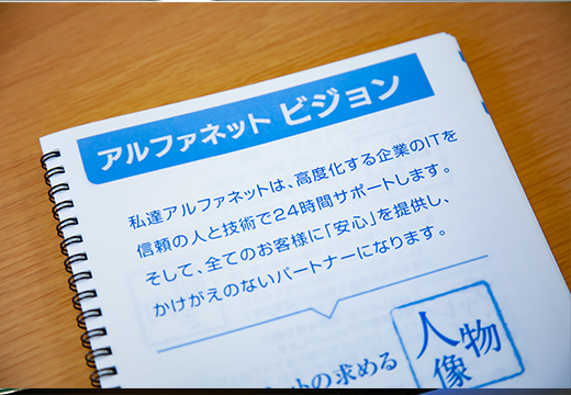 ビジョンや行動指針、CSマインドを記した「アルファノート」