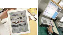 同社は、ICT化に注力し、勤怠管理は静脈認証で行い、タブレット端末などで見る電子カタログも用意。