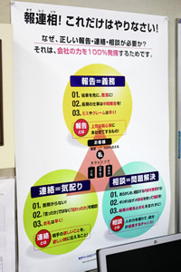 ホウレンソウ(報告、連絡、相談)を促すポスター。
