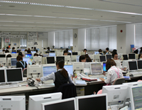 カスタマコミュニケーション部のフロア。電話が終わるごとに、周りからフィードバックし合う風土がある。