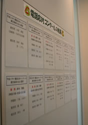 過去の「電話応対コンクール」で入賞した社員の氏名が一覧できる掲示物。 -