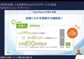 同社の中心事業である介護事業では、紙ベースの管理により「記録のための残業」が発生し、長時間労働と生産性の低下につながっていた。この課題解決のため、クラウドサービスの導入を検討したが、フィットするものがなく、最終的に経済産業省の支援を受け、独自のクラウドサービス「Care Viewer」を自ら開発した。現場に即した機能を盛り込んだことで、残業時間の大幅な削減を達成。さらに2020年10月の同業他社に向けた有償公開では3ヵ月で570の事業所が導入、年間で約1億2900万円の売上を見込んでいる。