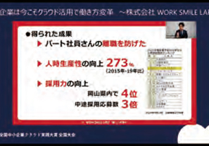同社ではパート社員が子供の急な病気で休むことが多く、休む側、休まれる側の双方に負担を生じていたことから、2016年にテレワーク環境整備への取り組みを開始。テレワークに資する各種クラウドサービスを導入したのち、社内ネットワークに接続せずに業務を可能とする仕組みも導入。2020年にはこうした仕組みを土台にタスク管理、電子契約、クラウドPBXなどを活用し「出社しなくてもいい環境」を構築した。こうしたクラウドの活用で、パートの離職率を下げるとともに、人時生産性の大幅な向上、採用力の向上も達成した。