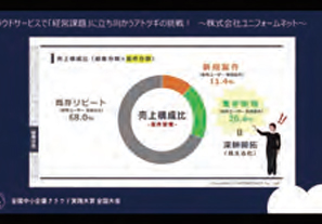 事業を継いだ現社長は、売上高や利益以外の顧客情報、社内情報、人材育成方法などが共有されていないことに危機感を覚え、属人的組織からの脱却を経営課題に掲げた。その解決のために多くのクラウドサービスを導入、特に営業部門では「Sales ForceAssistant」を活用、顧客情報の見える化を進め、10年間で売上高2倍を達成した。