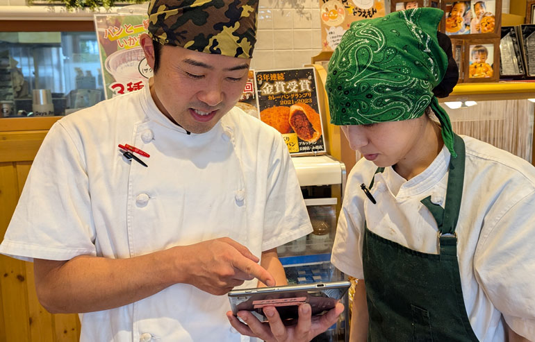 長谷川氏:「導入前は、パンの売り切れにより機会損失が発生する日と、逆にパンが大量に売れ残る日が、それぞれ週1回くらいの頻度でありました。これが導入後は月1回ほどに減り、売れ残った場合でもその量が従来より少なくなりました。最近は、残ったパンを冷凍して翌日に『もったいないパンセット』として販売していることもあって、廃棄はほぼゼロに抑えられるようになりました。さらに、従業員の収入減につながらないよう、基本給を上げながらも、残業時間を減少させることもできています」