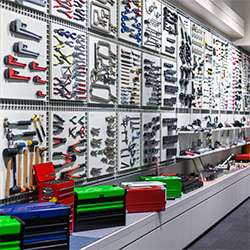自動車から医療機器まで、メカニック(整備士)が使うさまざまな工具類を1万種以上も製造する京都機械工具。常に革新的な開発に取り組む同社は、工具と最新技術のIoT(モノのインターネット)やウェアラブル端末、RFID※1などを組み合わせた次世代工具の開発にも挑戦し、作業者の安全と効率向上のために幅広く事業を展開しています。