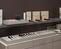 「このシリーズは、メイク用とスキンケア用の2ラインからなるもので、その軸や持ち手に金属を使わず、全体がウォールナット材で作られていることが特長です。ドイツの『レッドドット・デザイン賞プロダクトデザイン2016』を受賞するなど、国内、海外から好評を得ています」(丸山氏)