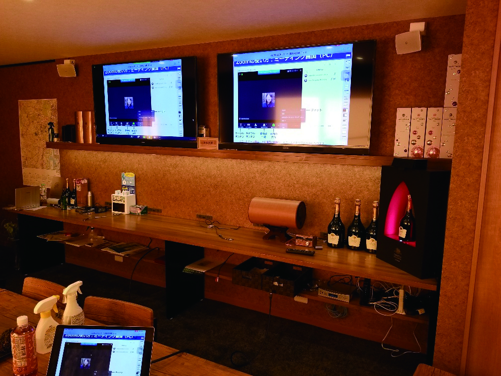 「HANALE KARUIZAWA」2Fに設置されたテレビスクリーン