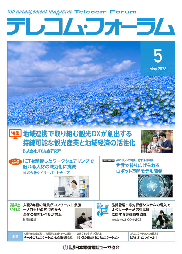 ICT分野の最新動向や企業のCS向上事例まで、多彩な情報をまとめたテレコム・フォーラム誌をPDFでダウンロードいただけます。